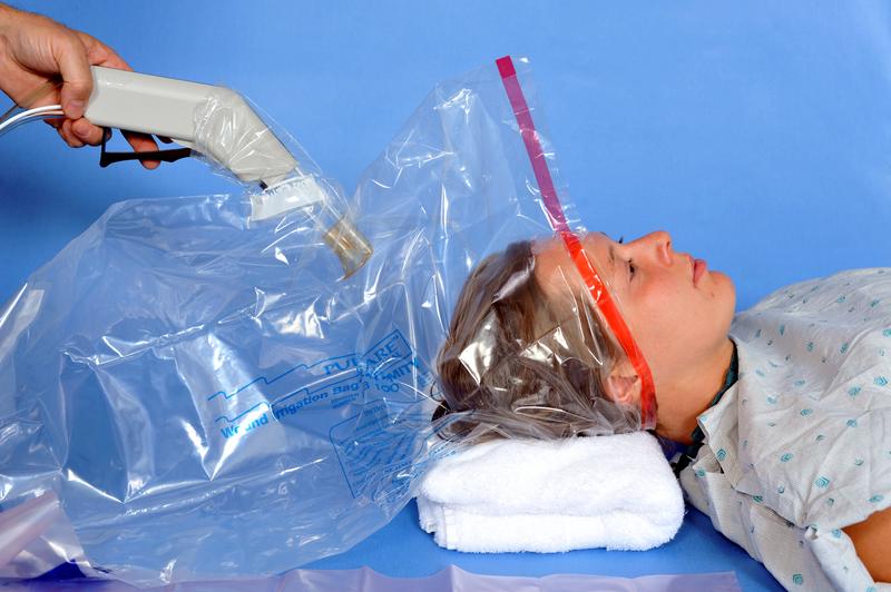 The Treatment Bag is sealed at the top to eliminate splash-back.